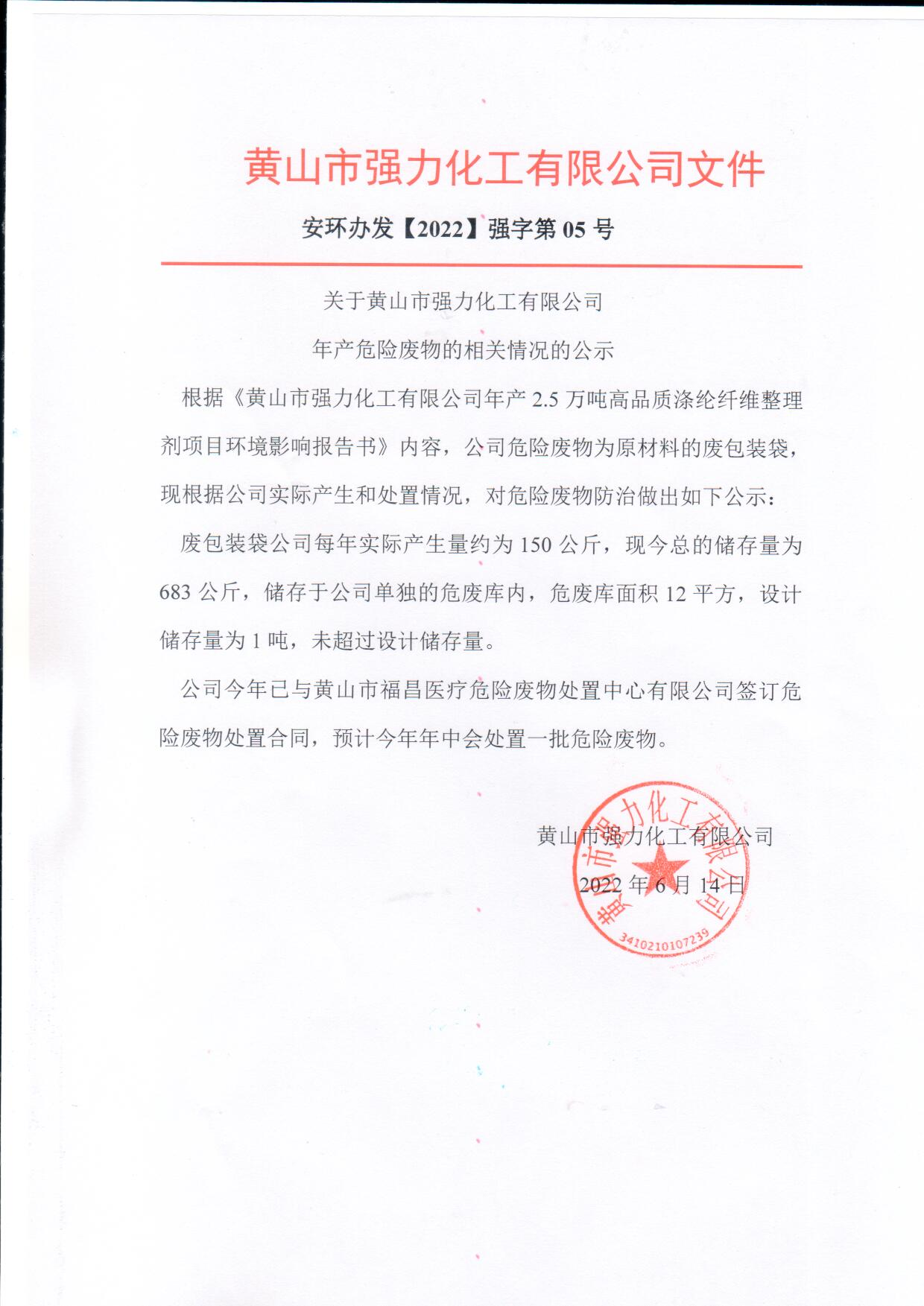公司危险废物信息公示