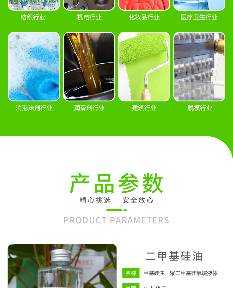 集研发,创新,生产,销售相结合,重点以生产研发有机硅新材料:以二甲基硅油、乙烯基硅油为主,以羟基硅油、有机硅乳液,氨基硅油,纺织助剂为辅的多元化化学工厂。