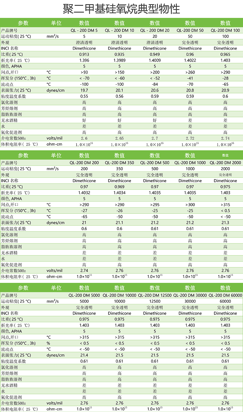 甲基硅油的特性甲基硅油具有很多特殊的性能: